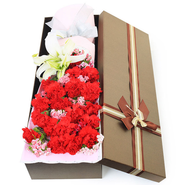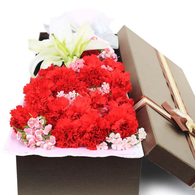 19朵红色康乃馨,1支香水百合、相思梅