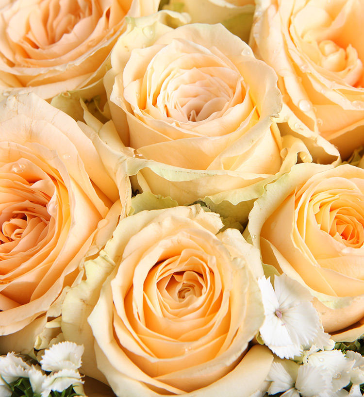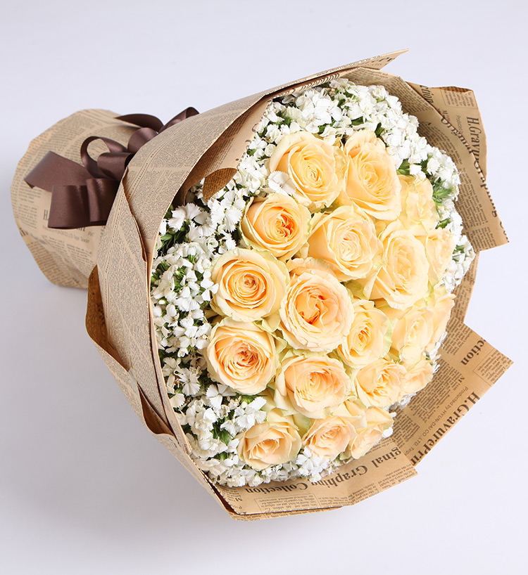 19枝香槟玫瑰,白色石竹梅10枝