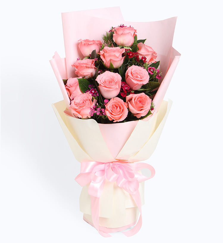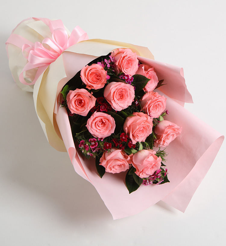 11枝戴安娜,混色石竹梅10枝、栀子叶5枝