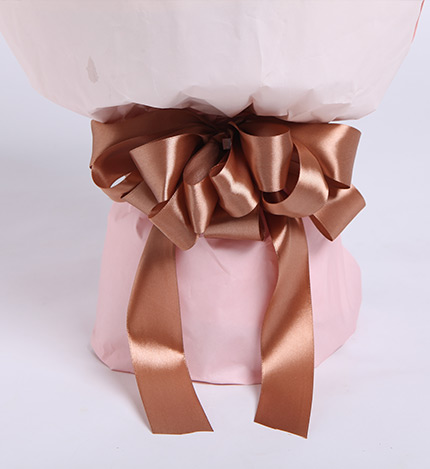- 包装:内层乱网纸,外层粉色白牛皮、水粉色压纹纸,咖啡色缎带花结