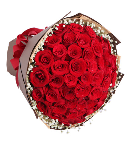 红玫瑰33枝,满天星0.5扎