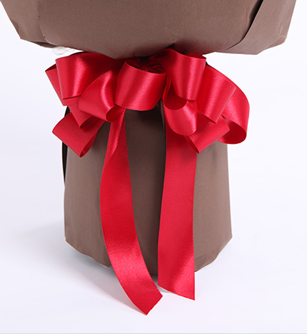 内层牛皮纸,外层咖啡色条纹纸,红色缎带花结