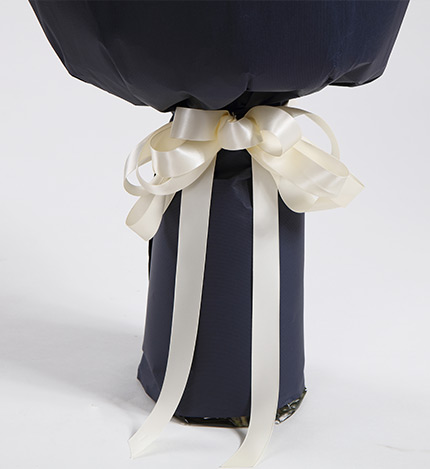- 包装:蓝色条纹纸,白色平面纸,米白色缎带花结