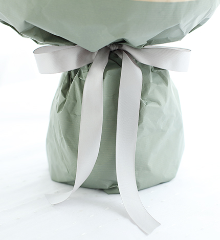 米白色平面纸,青灰色双面牛皮纸,银灰色缎带花结