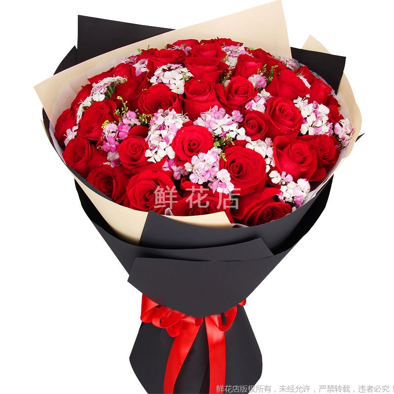 1、鲜花为手工制作,实际花束可能会与图示有些出入,但我们保证鲜花主花材品种、新鲜程度、数量、颜色与说明一致。