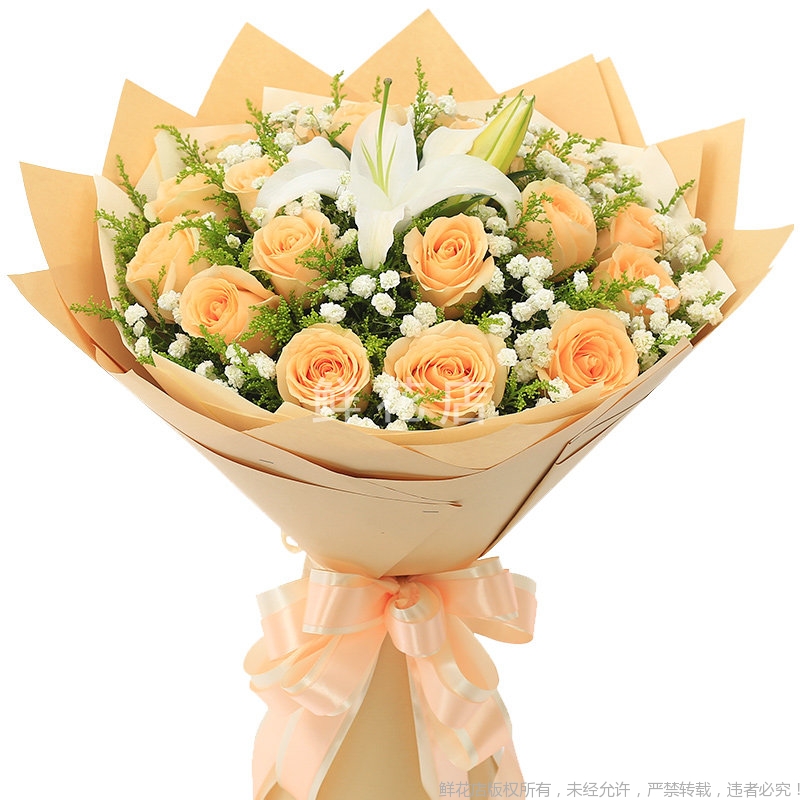 2、由于地域或季节的限制,需要更换主花材时,我们将联系您提出更换建议, 如在有效配送时间内得不到订货人的确认,将采用同等价值或相同寓意的花材代替。