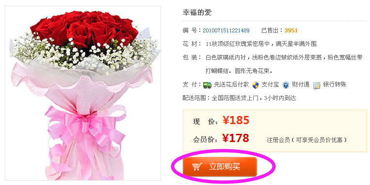 点击图片可看到详细介绍,再点击“立即购买”按钮,然后按照提示逐步完成提交订单,收货人的信息请您详细填写,免费赠送精美贺卡或飘带,提交成功后请按步骤在线支付或银行转账(支持支付宝、网银、微信转账、银行转账)