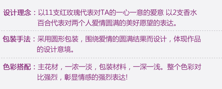 1、鲜花为手工制作,实际花束可能会与图示有些出入,但我们保证鲜花主花材品种、新鲜程度、数量、颜色与说明一致。
