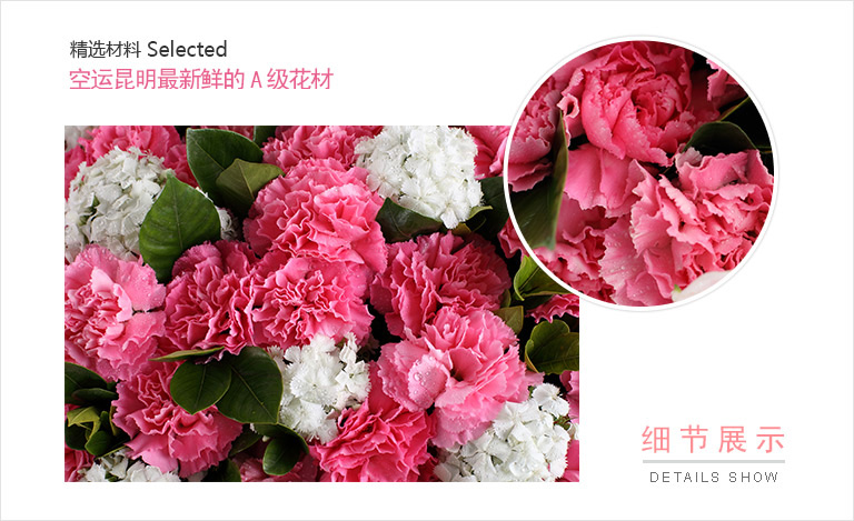 2、由于地域或季节的限制,需要更换主花材时,我们将联系您提出更换建议, 如在有效配送时间内得不到订货人的确认,将采用同等价值或相同寓意的花材代替。