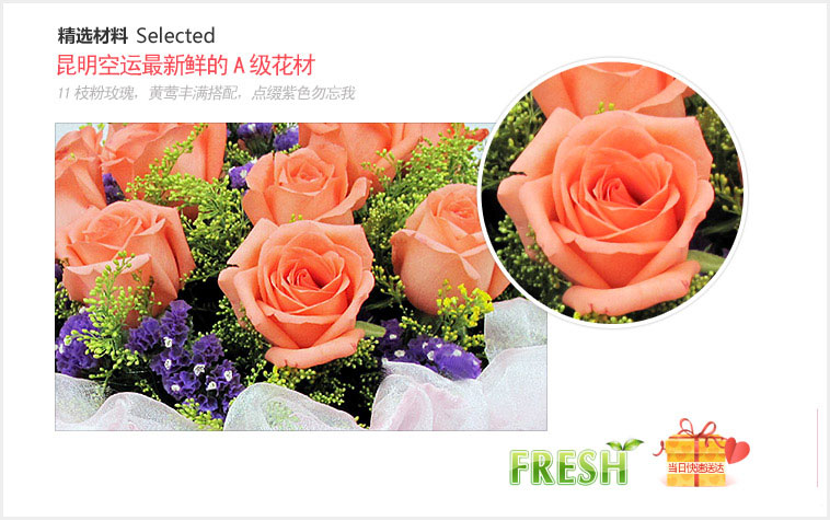 百丽鲜花全国配送!大中城市市区:免费配送,请直接下单!