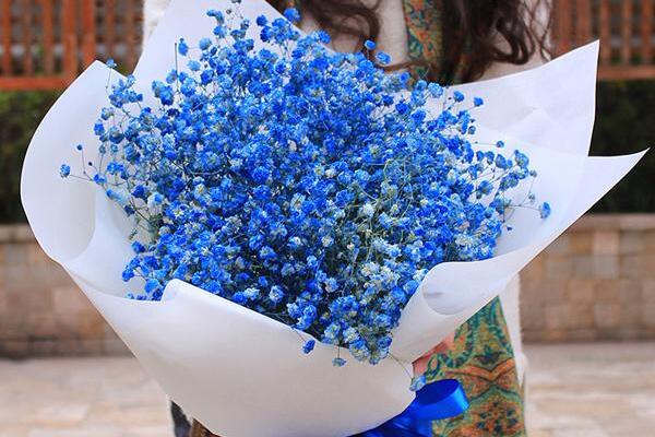 满天星,该种花型花色美丽,被广泛应用于鲜花店,shichangyongdechahuacailiao,guanshangjiazhigao,neimelansemantianxinghuayushishenme?yishudagaiduoshaoqian?shihesongnvpengyouma?