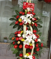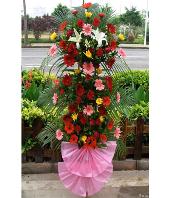 - 【19枝粉色扶郎,白色小菊间插,栀子叶间插】+【8寸鲜奶水果蛋糕】