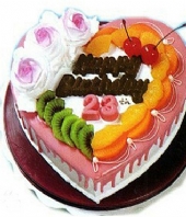 - 8寸心形水果鲜奶蛋糕,3朵奶油玫瑰花及时令水果。