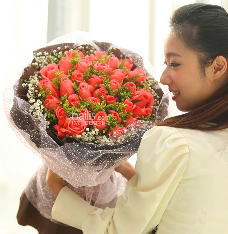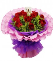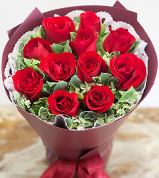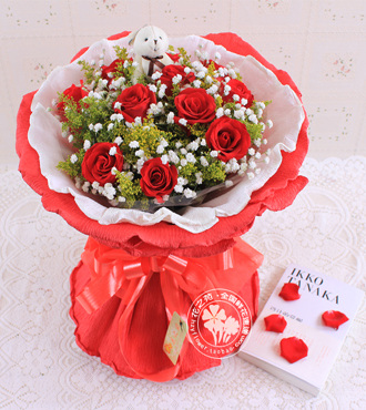 - 【11枝顶级红玫瑰紧密居中,满天星丰满外围】+【8寸巧克力蛋糕】