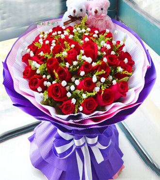 - 【19枝红玫瑰,绿叶、满天星 】 +