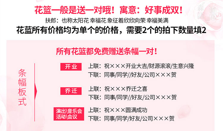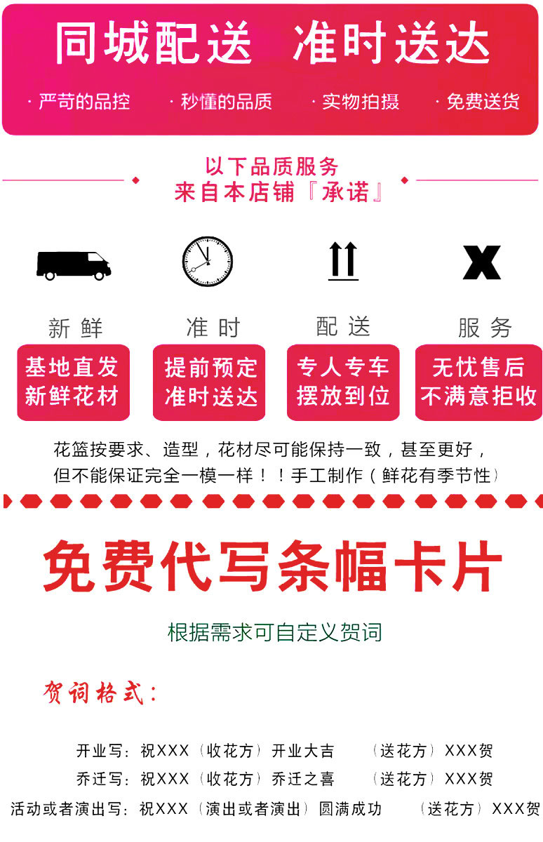 附送:免费附送飘带,代写贺词祝福和署名。(下单时备注即可)