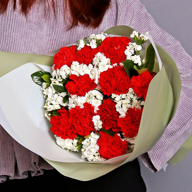 11枝红色康乃馨,白色相思梅,栀子叶