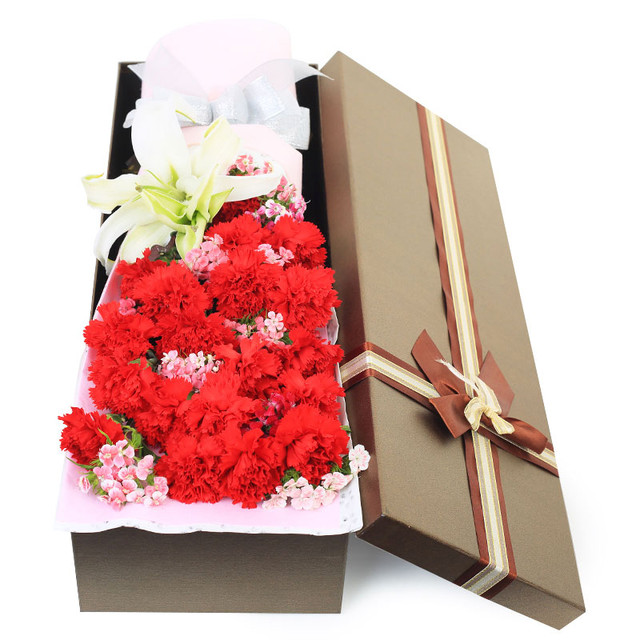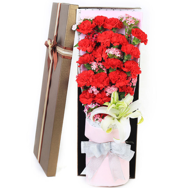 19朵红色康乃馨,1支香水百合、相思梅