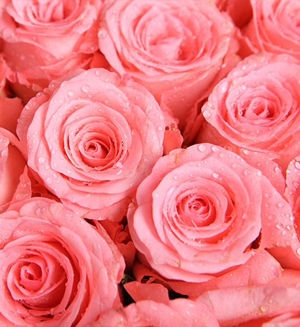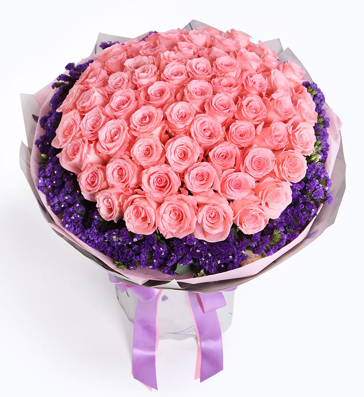 戴安娜粉玫瑰66枝,紫色勿忘我1扎