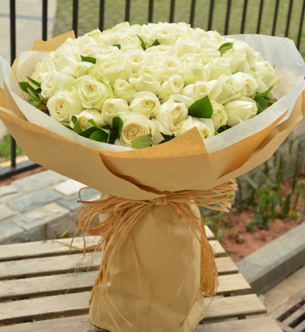 白玫瑰99枝,栀子叶10枝