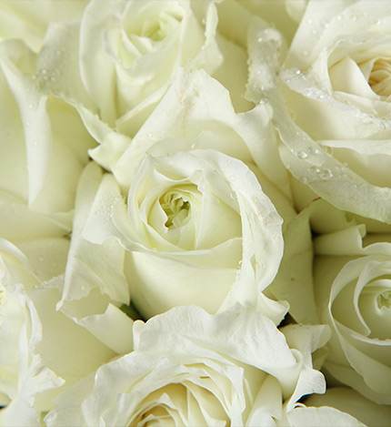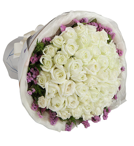 白玫瑰50枝,粉勿忘我0.3扎、绿石竹10枝