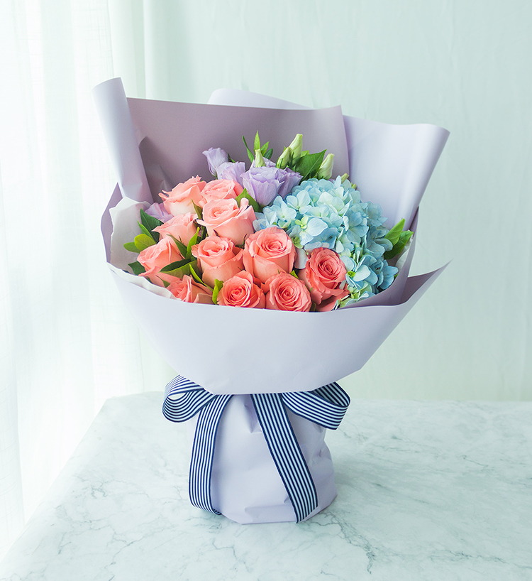 1、鲜花为手工制作,实际花束可能会与图示有些出入,但我们保证鲜花主花材品种、新鲜程度、数量、颜色与说明一致。