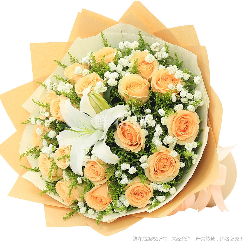 2、由于地域或季节的限制,需要更换主花材时,我们将联系您提出更换建议, 如在有效配送时间内得不到订货人的确认,将采用同等价值或相同寓意的花材代替。