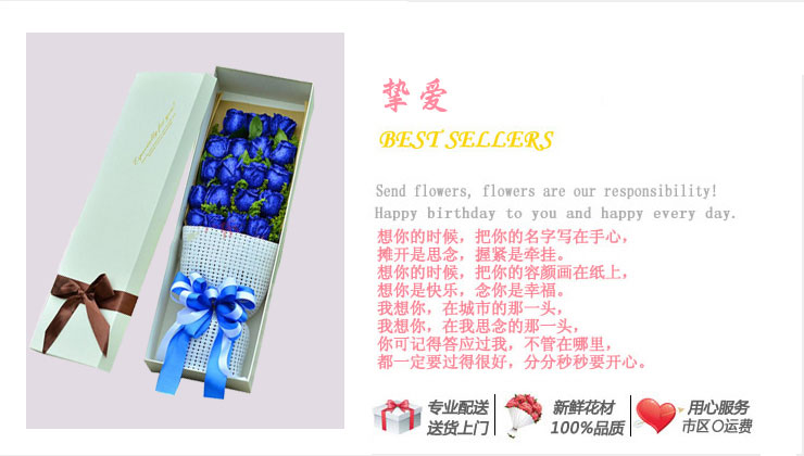 百丽鲜花全国配送!大中城市市区:免费配送,请直接下单!