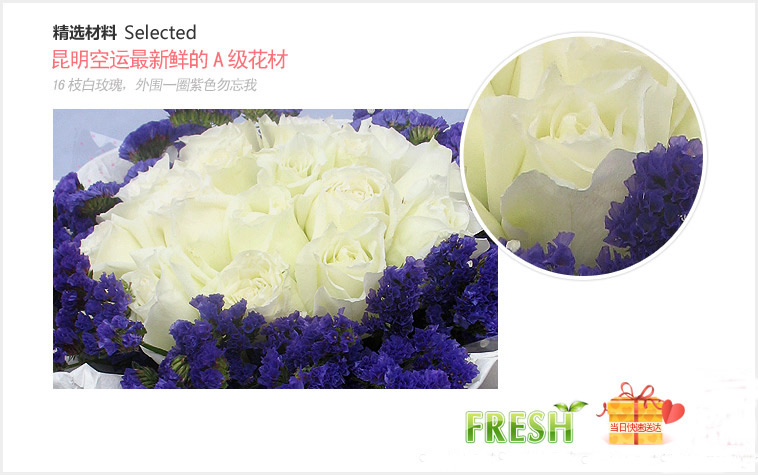 百丽鲜花全国配送!大中城市市区:免费配送,请直接下单!
