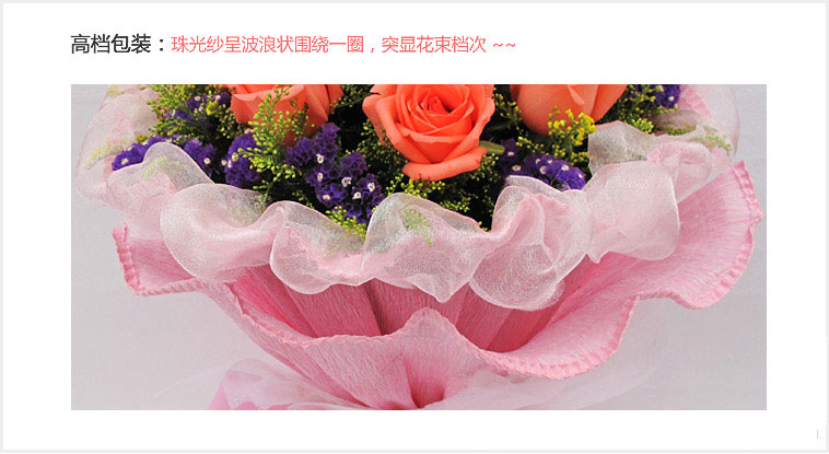 1、鲜花为手工制作,实际花束可能会与图示有些出入,但我们保证鲜花主花材品种、新鲜程度、数量、颜色与说明一致。
