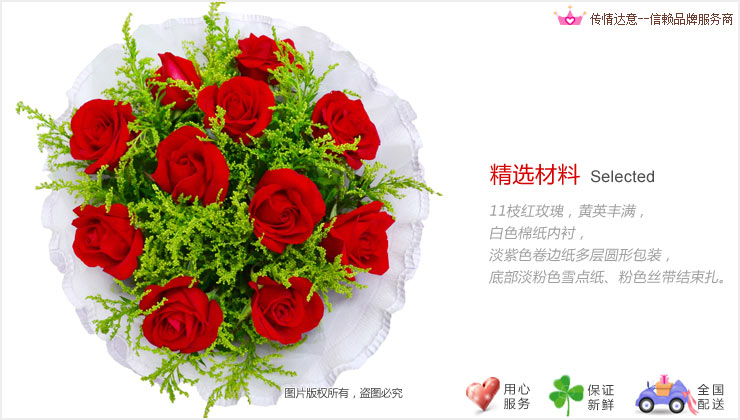 2、由于地域或季节的限制,需要更换主花材时,我们将联系您提出更换建议, 如在有效配送时间内得不到订货人的确认,将采用同等价值或相同寓意的花材代替。