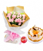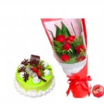 - 红玫瑰11枝,满天星、绿叶丰满+8寸奶油蛋糕