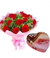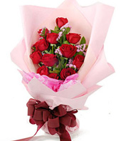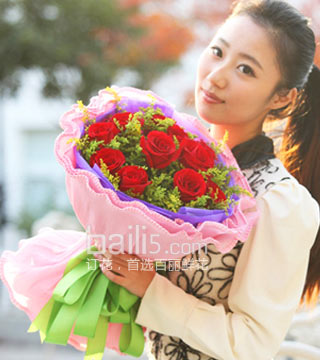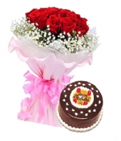 - 【11枝顶级红玫瑰紧密居中,满天星丰满外围】+【8寸巧克力蛋糕】