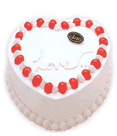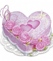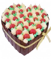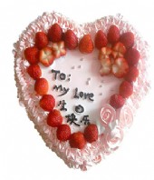 - 8寸心形水果鲜奶蛋糕,3朵奶油玫瑰花及时令水果。